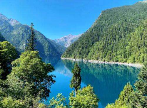 九寨沟被誉为“人间仙境,九寨归来不看水”。这里的水确实美得无以言表,从翠绿到深蓝,变幻无穷,湖光山色构成了一幅幅绝美的画卷。