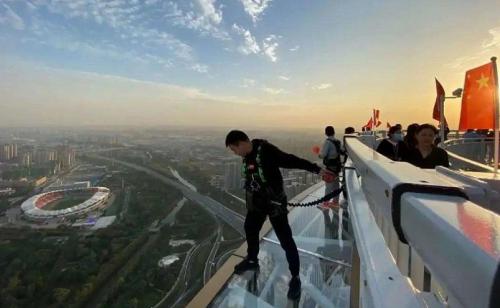 在福塔上,体验站在三百余米的高空欣赏楼下车水马龙,万家灯火,蓝天白云,触不可及。在这里,每一步都充满刺激,滑道上速度很快,特别震撼,全程尖叫,身临其境,能够感受到郑州的发展,身临其境的意境。