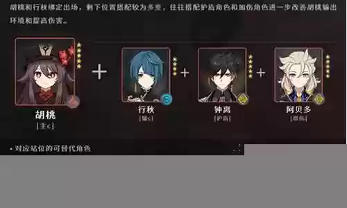 在《原神》中,胡桃的阵容搭配可以根据不同的敌人类型和玩家喜好进行选择。以下是一些推荐的胡桃阵容搭配: