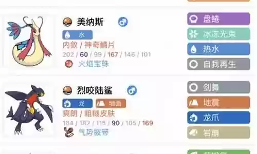 烈咬陆鲨:性格固执;努力值攻击跟速度点满;道具抗冰果;特性粗糙皮肤;配招:龙爪、地震、岩崩、剑舞。