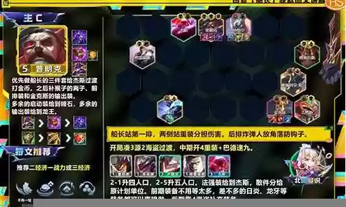 海盗推荐玩的条件是前期2星诺手或者在拥有2星男枪的情况下有希望拿到2星诺手,此外至少要有1件成品回蓝装或者法强装。这个时候可以考虑海盗阵容。