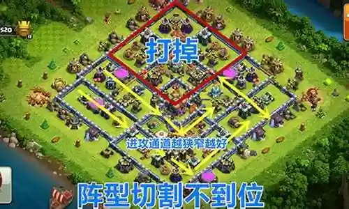 一、观察阵形。开打前要仔细观察思考,主要观察阵型,可能的陷阱位置这两个关键信息。阵型分两种,建筑密集型和建筑开阔型。通常认为防御密集的阵型比较适合猪流,其实不然,八本受限于防御塔和陷阱个数,把建筑分散了势必造成防御塔之间的联合防御力减弱,并且躲避陷阱的几率更高。所以只要改变下猪方式就能轻易破解。