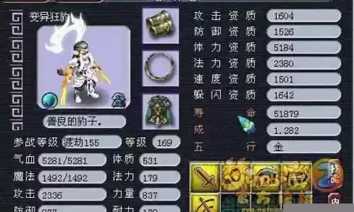 人形狂豹出现原理:兽型狂豹(包括野生、头领、宝宝)每回合都有一定概率(居观察概率低于1%)使用变身,变成人形狂豹。 如何抓:普通狂豹一般2400血左右,把豹子打掉一定血,我一般打到150以下(我用100暗器打154),打掉血其实是为了变身后好抓,满血的豹子也会变成人形的。本人8级猎术,大唐职业也没多少蓝,但抓豹子足够了。战斗到100回合会自动结束,不管是否杀死怪都会结束战斗。 人猫方法相同。 大家最关心的应该是变异人形狂豹怎么来的了,本人所抓4只都是由普通兽型豹子(非BB)变成,就是在抓的过程中,普通兽型豹子直接变身成为变异人形狂豹宝宝。 另有说法是兽型变异狂豹宝宝,变身后就是变异人形狂豹宝宝,本人无法证实,没碰到过。 大家也许会怀疑我所说的,但是其实我没什么好隐藏的,方法很简单,拼的是概率,就像2元**能中500W一样。