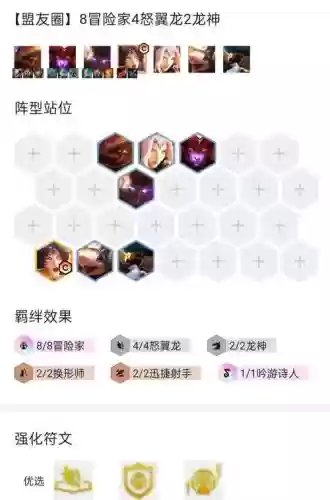1、阵容羁绊包括8冒险家、1吟游诗人、2龙神、4怒翼龙、2秘术师、2换形师。这种组合不仅确保了队伍的攻速优势,还能提供足够的生存能力。关键角色装备如下:主c老鼠携带飓风、鬼刀,副c杰斯装备无尽、珠光、回蓝刀,瑟庄妮和希瓦娜负责提供肉装,呲呲亦配备肉装,洛和巴德则承担辅助职责。